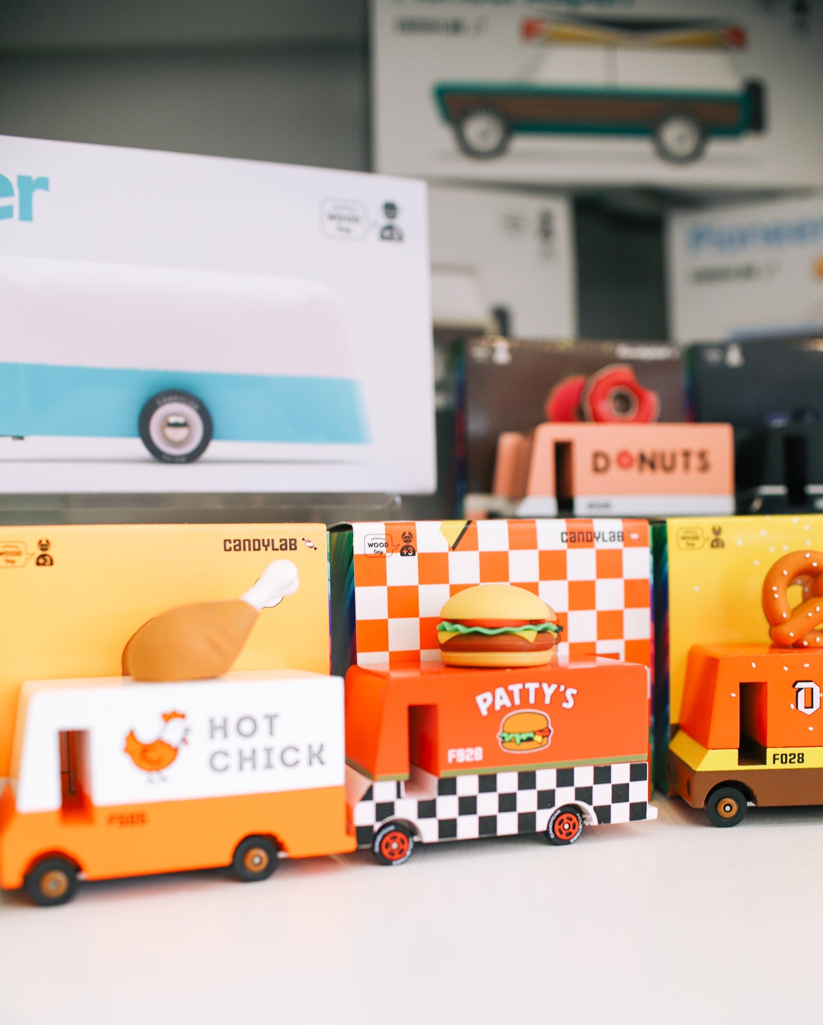 Materials & Info: Solid Beech Wood, water-based paint and clear urethane coat. ABS plastic wheels. Safety tested according to US CPSIA and European, Australian and New Zealand regulations. Dimensions: 8.4cm L x 4cm W x 6.6cm H